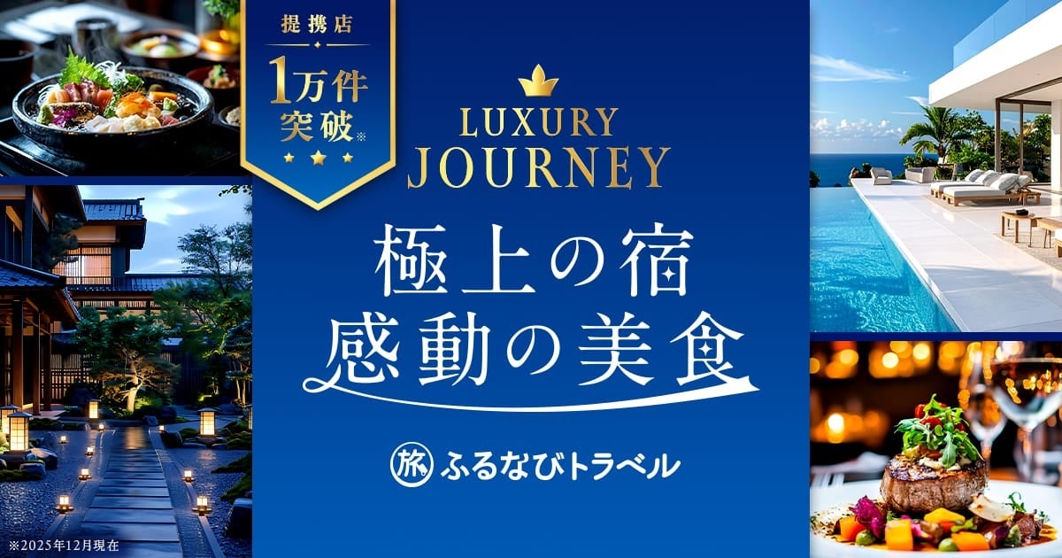 「ふるなびトラベル」は、全国のラグジュアリーホテル・高級旅館、評価の高いレストランや特別な体験施設など、“極上の宿”と“感動の美食”を現地で楽しめるポイント型ふるさと納税サービスです。今回の10,000施設突破により、選択肢は過去最大規模となりました。