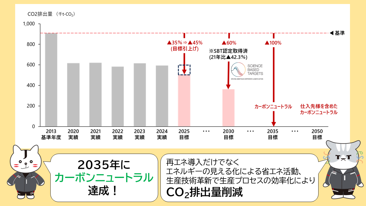 ジェイテクトグループは、「環境チャレンジ2050」を策定し「All for One Earth」をスローガンに掲げ、かけがえのない地球を次世代につなぐためのチャレンジを続けています。カーボンニュートラル達成のためにScope1、2、3すべてにおいてCO2排出量削減をすすめており、特に自社の生産活動に関連するScope1、2においては2035年にカーボンニュートラル達成を目指しています。