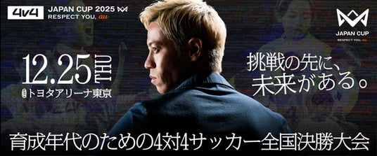 KDDIは、2025年12月20日・21日および25日の3日間、Now Do株式会社(本社:東京都新宿区、代表取締役社長:本田 圭佑、以下 Now Do)が運営する育成年代向け4人制サッカーの全国大会「4v4 JAPAN CUP 2025 RESPECT YOU, au」(以下、本大会)のメインパートナーとしてauブースを出展します。