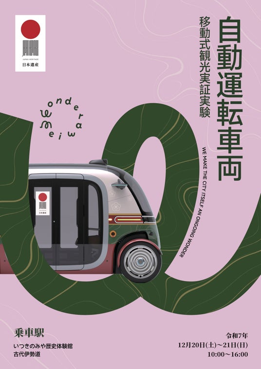 明和町の持続可能な観光地域づくりを推進する一般社団法人明和観光商社(本社:三重県多気郡明和町、代表理事:千田良仁)は、ピクセルインテリジェンス株式会社と連携し、自動運転車両「RoboBus(ロボ・バス)」を活用した移動式観光実証実験を斎宮史跡エリアにて実施いたします。