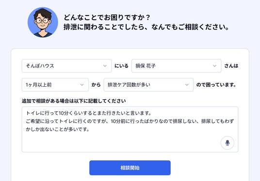 <図 1>「教えて!排泄ケア」の相談画面