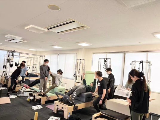 マット、リフォーマー、タワー、チェアなど多様な器具を用いた数十~数百のエクササイズを学び、それぞれの目的・効果・対象者・注意点・レベル調整まで丁寧に習得。クライアントの状態や目的に応じて即実践できるプログラム設計力の育成に重点が置かれています。座学はオンライン、実技は対面で行い、受講後も半年間オンラインで復習できる柔軟な学習環境が整備されています。