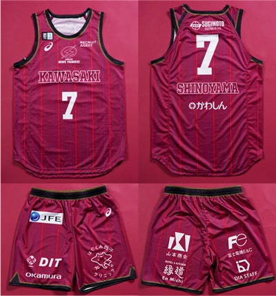 "KAWASAKI" CITY EDITION UNIFORM川崎市のブランドメッセージ「Colors, Future! いろいろって、未来。」を表現する赤・緑・青の光の三原色をデザイン全体に採用しました。正面のロゴの掲出については、キャリア教育や多文化共生等の取り組みを推進し世界と繋がる未来を目指していくことを川崎ブレイブサンダースのグローバトップパートナーである 株式会社ミツトヨ(本社:川崎市高津区、代表取締役社長沼田恵明以下:ミツトヨ)に御賛同いただき、スポンサー企業ロゴから「KAWASAKI」ロゴへの変更が実現しました。そして、「KAWASAKI」を胸に掲出することで、川崎を代表するグローバル企業であるミツトヨとともに地域の誇りとなるクラブになる決意を表現しています。