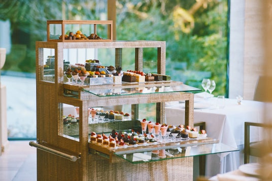 パティシエ 荒木監修による、デザートワゴンをお愉しみいただける平日限定のランチコースです。メインディッシュは魚料理または肉料理からお選びいただき、通常のデザートの代わりに、パティシエ特製のデザートワゴンをお席までお持ちいたします。産地限定のシングルオリジンのチョコレートやリキュールなどのお酒を用いた大人のボンボンをご用意し、この時期しか味わえないデザートをお好きなだけご堪能いただけます。バレンタインのひとときを、大切な方とゆっくりお過ごしください。