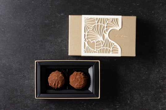 トリュフショコラ・オ・ロム ¥2,000/2 個入マルティニーク産ラムの中でも特に香り高く、高い人気を誇るブランド「クレマン」の15 年ものを使用し、カカオ66%のチョコレートと組み合わせました。口に入れた瞬間にラム酒の芳醇な香りに包まれ、そのあとにチョコレートのほろ苦さが広がります。なめらかな口どけと、完成されたオトナの味わいをご堪能いただけます。
