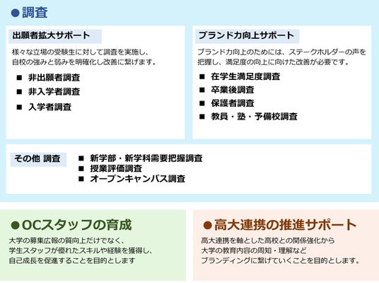「スクール」分野では25年以上の実績を有しています。これまでに年間40校以上、累計275,000名以上の生徒・学生を対象とした調査を実施してきました。【主な提供サービス】