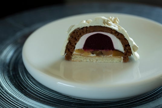 プランシグネチャースイーツプランシグネチャースイーツは、HANROの世界観を表現したメレンゲクッキーです。メレンゲクッキーの中には、モンブランが入っており、ラムシロップ入りクレームマロン、クレームシャンティ、クレームカシス、ビスキュイダコワーズなどの多様な味わい、カシスの酸味とメレンゲの甘さの調和などをお楽しみいただけます。