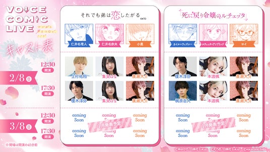株式会社ヒューマックスエンタテインメント(東京都新宿区、代表取締役社長:秋元巳智雄)が、池袋HUMAXシネマズにて開催する『ボイスコミックライブ』の2026年2月8日(日)の出演者が決定しました。本公演は白泉社のLaLa創刊50周年記念公演として「ときめき(ハート)ラブコメ祭り」と題して開催します。『ボイスコミックライブ』は、スクリーンに映るマンガのキャラクターに、声優がライブで声を吹き込むステージイベントです。生の演技だからこそ味わえる緊張感と臨場感が、観客の皆様を物語の世界へエスコートいたします。