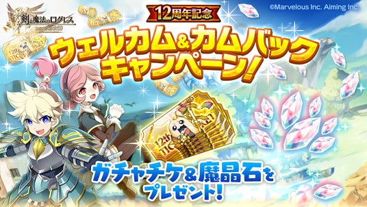 今ログレスを始めるor戻ってくると、魔晶石50個と「12周年記念ガチャチケット」100枚をプレゼント!
