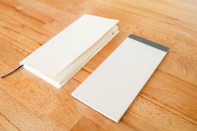 中の紙はドット方眼、チェックリスト、4コマの3種類があり、私はドット方眼を愛用中です。