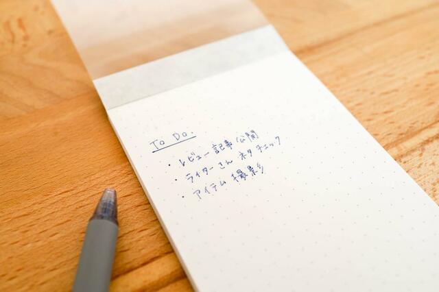 毎日気兼ねなく書けて、その日が終わったらページを切り取って捨てることができて、リストを作りやすいサイズ……など求めていた条件にぴったりで。