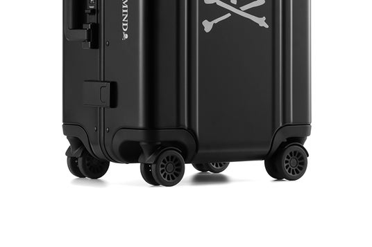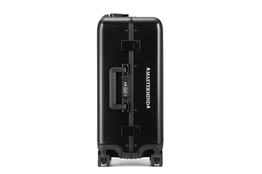 漆黒のボディにレーザー刻印された“スカル” と“MASTERMIND” のロゴが、独創的な世界観を演出します。内装やラゲージタグには、ゼロハリバートンとマスターマインドのダブルロゴを配し、細部までアイコニックなディティールを施しました。