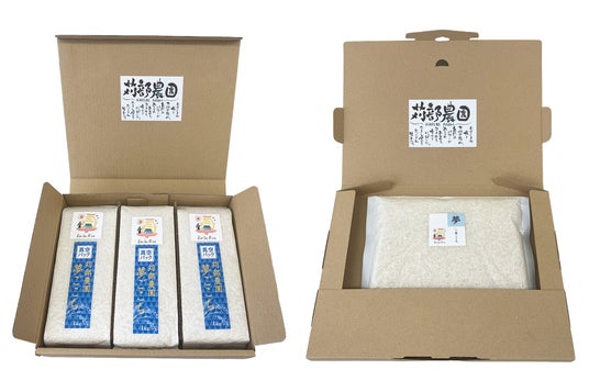 ラインナップは「1kg×3袋セット」と「5合(約750g)×1袋」の2種類をご用意しています。