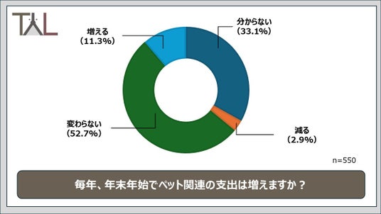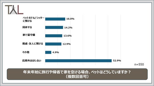 ペットの家族化推進をミッションとし、ペットが”家族”としてあたりまえになる世界の創造への貢献を目指す急成長ベンチャー企業の株式会社TYL(本社:東京都港区 代表取締役:金児 将平、以下TYL)は、「ペットとの年末年始の過ごし方についての意識調査」を実施しました。