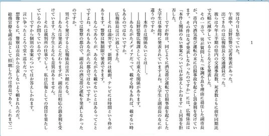 PCブラウザで閲覧した場合の例(本文サンプル:本城雅人先生『対決の記者』より)