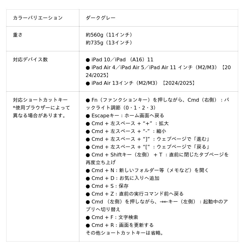また、マルチフィンガー対応のトラックパット付きキーボードのショートカットキーを上手に使用すれば、iPadをMacBookの様に操作・使用が行えます。