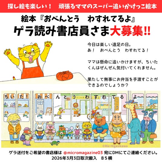 マイクロマガジン社(東京都中央区)は、2026年3月刊行予定の新作絵本『おべんとう わすれてるよ』のゲラ(校了前の原稿)を読んでくださる書店員さまを募集いたします。
