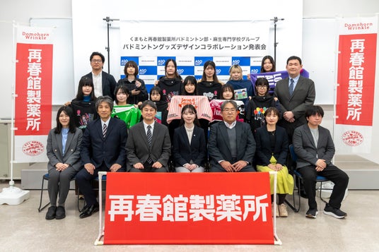 麻生専門学校にて、麻生専門学校グループ ・くまもと再春館製薬所バドミントン部【バドミントングッズデザインコラボレーション発表会】が行われました。