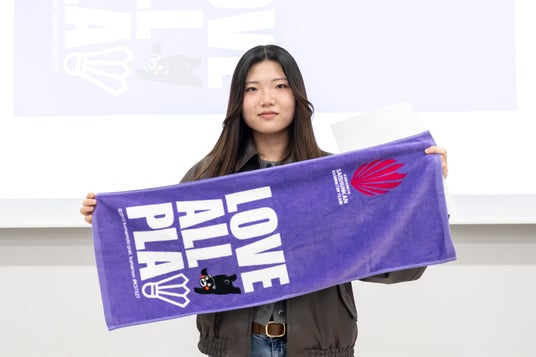 麻生専門学校の学生が、くまもと再春館製薬所バドミントン部のグッズデザインを手がけたのは昨年度に引き続き2回目です。今年度は、220点の応募の中から、麻生建築&デザイン専門学校とASOポップカルチャー専門学校の学生12名が手掛けた21点の作品が採用されました!デザインの発案から商品化、さらに販売までの一連のプロセスを体験することで、就職後、即戦力として活躍できるスキルを養うことができました。本グッズは熊本県にて開催されていた、バドミントンの世界大会(熊本マスターズジャパン2025)でも販売され、学生が手掛けた作品も一部売り切れが出るなどグッズブースも大盛況でした。