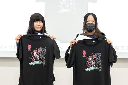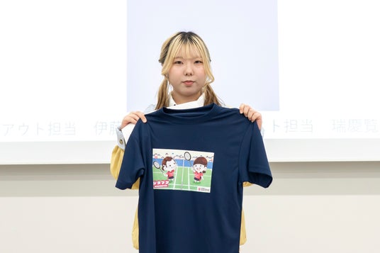 実際に自分のデザインしたTシャツが形になって嬉しいです。制作を通して、条件に合わせてレイアウトを考える発想力が身についたと思います。この産学連携は、実務的な経験をする貴重な機会だと感じます。将来は、海外でデザイナーとして活躍したいと思っているので積極的に様々なことに挑戦していこうと思います。
