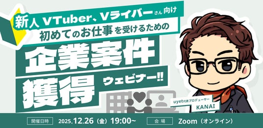 VTuber、IPコンテンツを通して日本と世界で新たな流通を生み出す“IPコンテンツの総合商社”株式会社uyet(ユエット)(本社:東京都渋谷区、代表取締役:梶田大樹)は、12月26日(金)19時より、新人VTuberやVライバーが案件獲得する上での戦略を解説するウェビナー「新人VTuber、Vライバーさん向け!初めてのお仕事を受けるための企業案件獲得ウェビナー」を開催します。