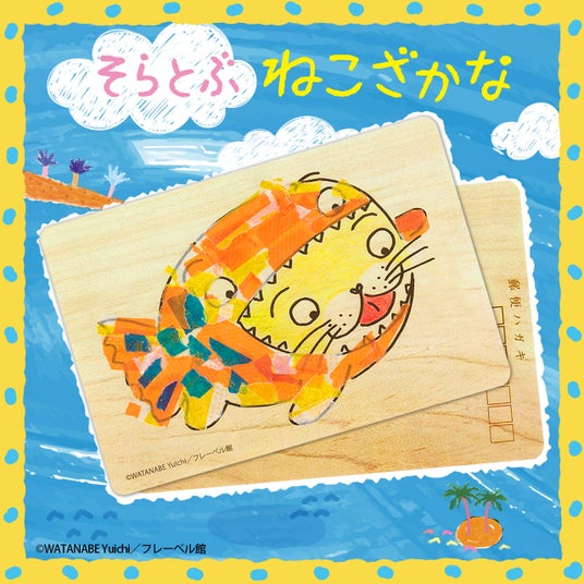 そらとぶねこざかなの間伐材ポストカード間伐材のポストカードのねこざかなをマスキングテープで彩って、自分だけのねこざかなをデザインしよう☆