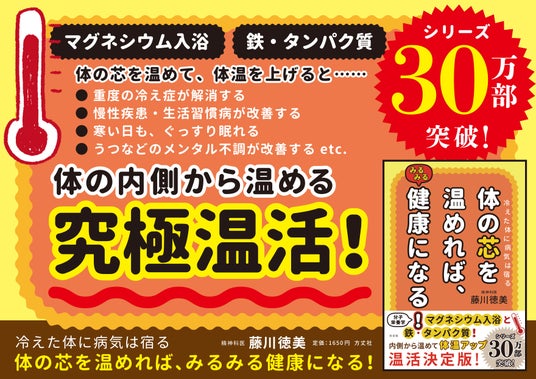 シリーズ30万部突破の藤川徳美先生による分子栄養学の「自分で治す栄養療法」シリーズ最新刊! 『体の芯を温めれば、みるみる健康になる! 』(方丈社)を12月23日に発売します。