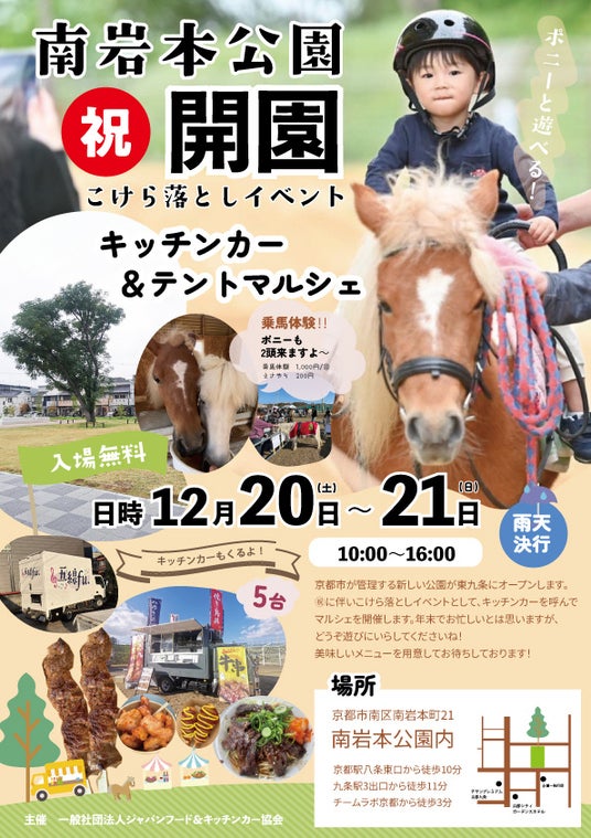 オープンを記念して12月20日(土)・21日(日)には、キッチンカーやポニーとのふれあい、アート展示が楽しめるオープニングイベントを開催します。