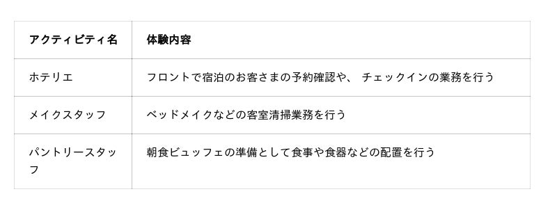 「ホテリエ」の仕事体験をするこども達