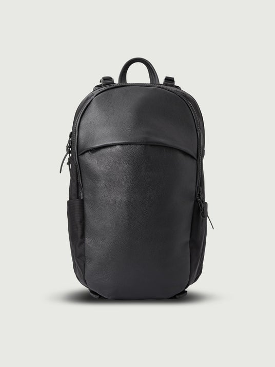人気モデル「JACOB BACKPACK」のフォルムをベースに、フロントパネルとハンドルには撥水グレインレザー、ボディにはCordura(R)社製のバリスティックナイロンを使用。さらにメインコンパートメントのジッパーはYKK社製VISLON(R) AquaGuard(R)ジッパーを採用し、デザイン性と耐水性に優れながらも日常からビジネスシーンまで調和する、洗練された仕上がりになっています。付属品の軽量Ripstopナイロン素材のオリジナルエコバッグがすっぽりと収まる専用ポケットも完備。