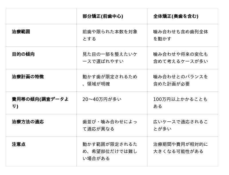 - 自分は部分矯正で良いのか