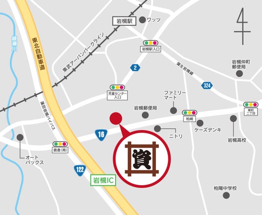 「資さんうどん岩槻インター店」は、首都圏を環状に結ぶ国道16号線沿いに位置します。お車で大変便利にご来店いただけますので、さいたま市内をはじめ、春日部・越谷方面からもアクセスしやすい立地です。また、暮らしやすい街としてファミリー層を中心に住宅地として人気が高いことに加え、事業所や物流関連施設も点在しているため、お仕事中のランチタイムや、ご家族での外食など、普段使いに便利にご利用いただけます。