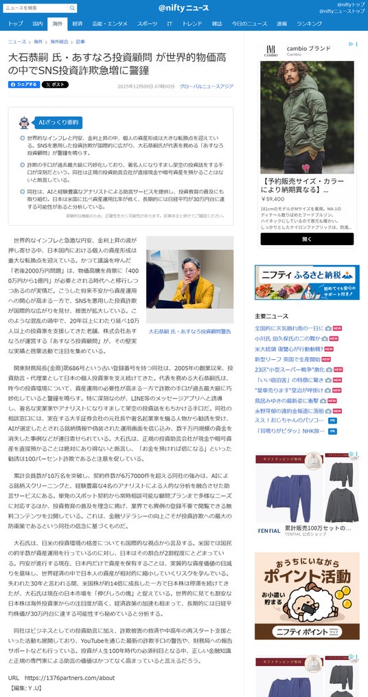 ■あすなろ投資顧問の投資詐欺対策の取り組みが楽天ニュースで取り上げられています