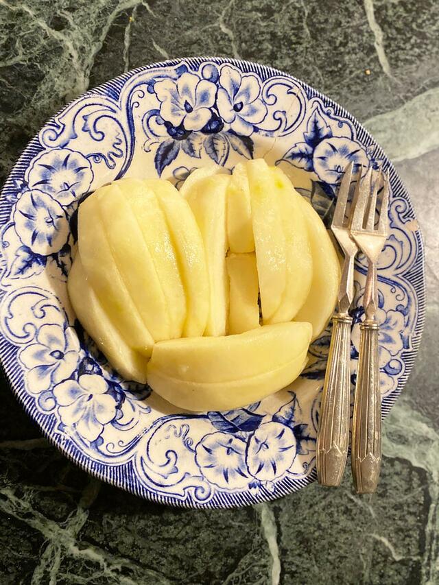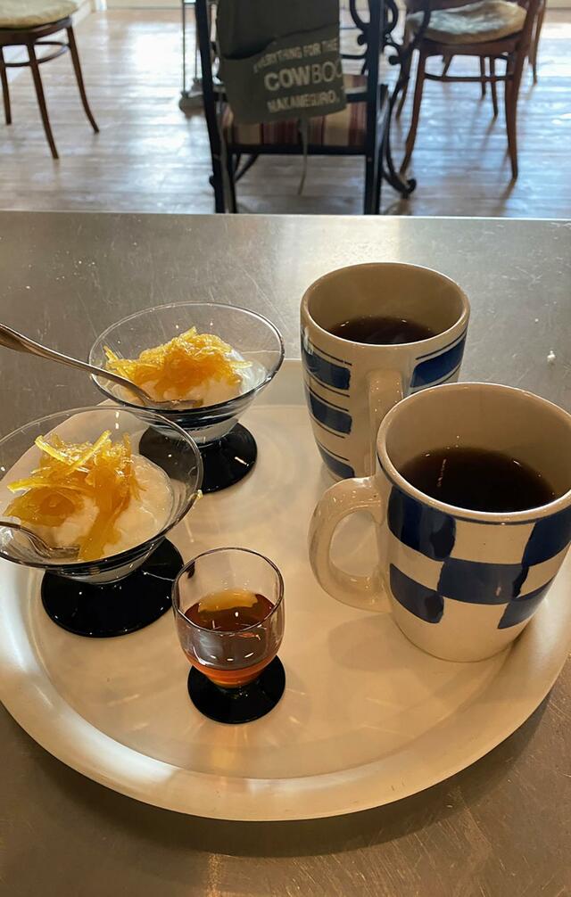 ヨーグルト+マーマレード、紅茶(まだ牛乳がない)。