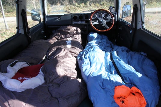 車中泊の段差解消に一役買う限界温度が同じ-34℃のダウン寝袋を比較対象にして車中泊キャンプで使いました。保温力はどちらも優れていて12月のほぼ零下になる環境でも暖かく眠れました。違いが出たのは寝心地で、化繊綿であるBears Rockは体の下のふくらみが潰れにくく、床の段差が気になりませんでした。化繊の中綿たっぷりなところが寝心地の良さにつながっていました。