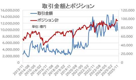 左軸-取引金額、右軸-ポジション計