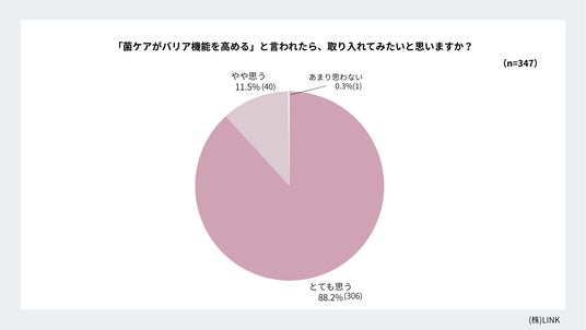 【設問】菌ケアが「バリア機能を高める」と聞いたら取り入れてみたいと思いますか?(n=347)