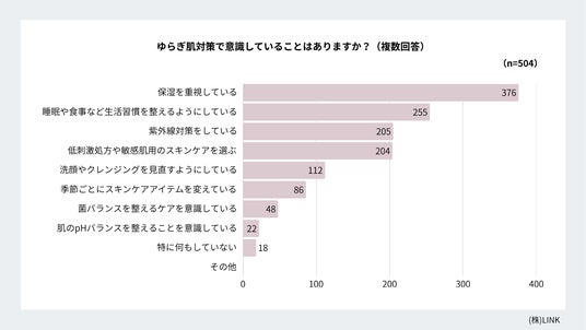 【設問】ゆらぎ肌対策で意識していることはありますか?(複数回答/n=504)