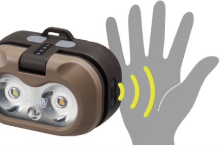 ハンズフリーライト(グリーン/ブラウン)」は、センサー搭載で、手を触れることなく非接触で操作可能です。スポット照明と手元パネル照明の2つの光を、ハンズフリーで使い分けもできるライトです。