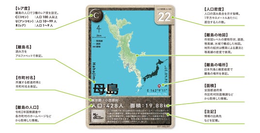 今回の第2弾では、新たに80の離島を収録しております。道路や家々の形、地形など、1枚のカードに凝縮された多彩な情報を眺めることで、それぞれの離島の特徴や暮らしの様子を想像し、離島ならではの魅力と楽しさを感じていただければ嬉しいです。