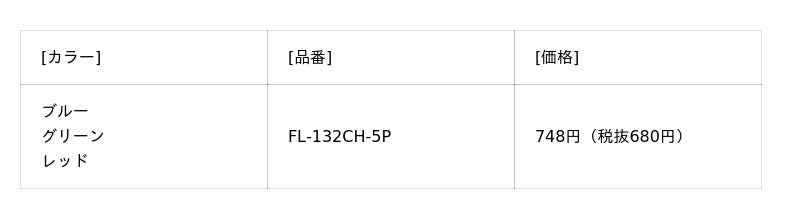 カラーはブルー、グリーン、レッドの3色で、メーカー希望小売価格(税込)は、5枚入りで748円です。
