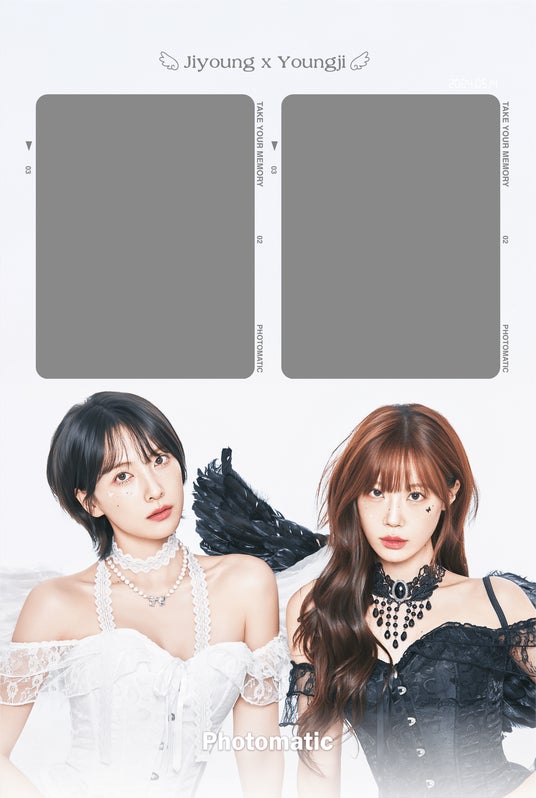 本イベントのメインビジュアルである、「JIYOUNGJI」の天使と悪魔のビジュアルがデザインされたフレームをはじめとした全3種のコラボレーションフレームをご用意。憧れの二人と同じ空間で過ごしたプレミアムな一夜の思い出を、Photomaticのこだわりの照明や撮影空間によって、最高の1枚として記録いただけます。