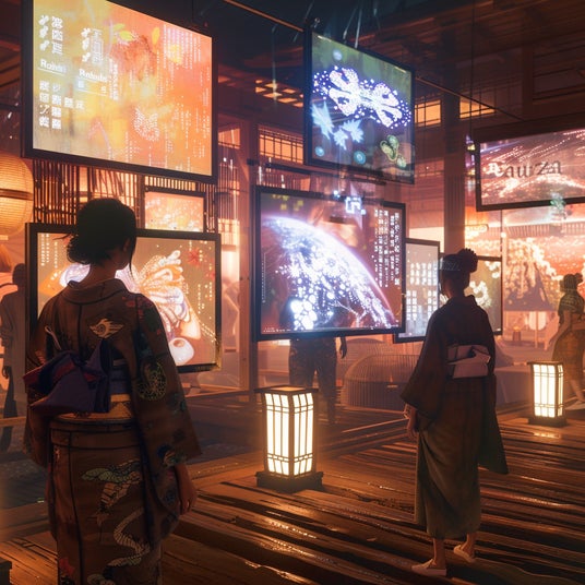 戦国メタバース内に広がるNFTマーケットプレイス「NFT楽市楽座」。作品・商品・物語が展示され、世界中の人々と直接つながる新しい市場空間。