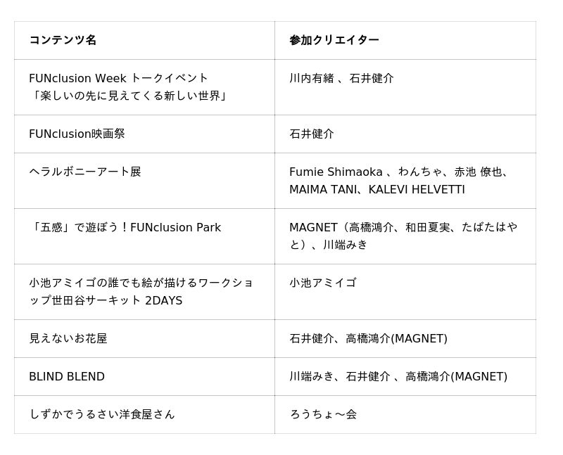 株式会社ヘラルボニー(岩手県盛岡市、代表取締役 Co-CEO:松田 崇弥、松田 文登、以下「ヘラルボニー」)と株式会社大広(本社:東京都港区、代表取締役社長:泉 恭雄、以下 「大広」)は、2025年12月3日から12月11日まで、下北沢のBONUS TRACKを中心とした下北線路街にて、体験型イベント「FUNclusion Week 2025」を共同開催しました。5日および6日の2日間で、延べ5000名が参加し、ワークショップ、展示、映画祭など「FUN」からはじまるインクルーシブな体験をいただきました。