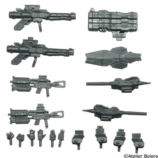 「ウェポンセット」はどっしりとした機体に合わせ、重厚感ある装備がラインナップ。