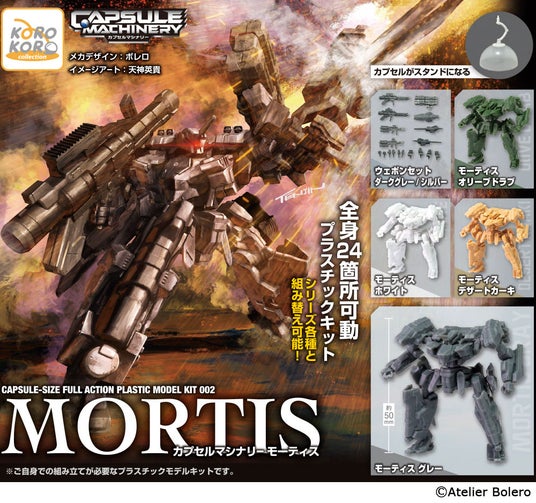 2025年7月から始動し、SNSを中心にご好評をいただいた、カプセルサイズの本格プラスチックキット「CAPSULE MACHINERY《カプセルマシナリー》」シリーズから第2弾「モーティス」が登場です。