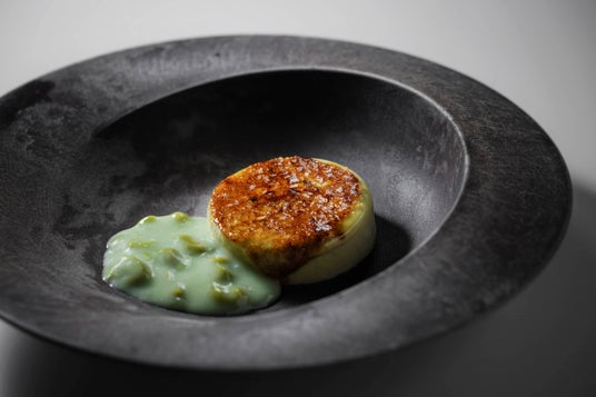 食事は、プライベートな空間でゆっくりと食事を楽しめるよう、食事処では半個室を案内します。贅沢会席のメイン料理、台の物は「山海宝づくし鍋」を提供します。この鍋は、三陸の山の恵みであるセリや牛肉、海の恵みであるフカヒレ、鮑、雲丹、牡蠣といった宮城の特産品を味わい尽くせる一品です。今回、この鍋料理を実現するにあたり、魚介だけでなく、牛肉にも合う出汁にこだわり、中国の伝統的な高級スープとして知られる「佛跳牆(ぶっちょうしょう)*1」から着想を得て、複数の貝類やきのこ類、鶏ガラなどから丁寧に出汁を取っています。滋味深い唯一無二の出汁が山海の幸の旨味を最大限に引き出し、忘れられない旅の食体験を演出します。また、甘味として提供するのは「ずんだのカタラーナ」です。ひんやりとしたカタラーナに宮城県で親しまれているずんだの濃厚なソースがかかった一品です。