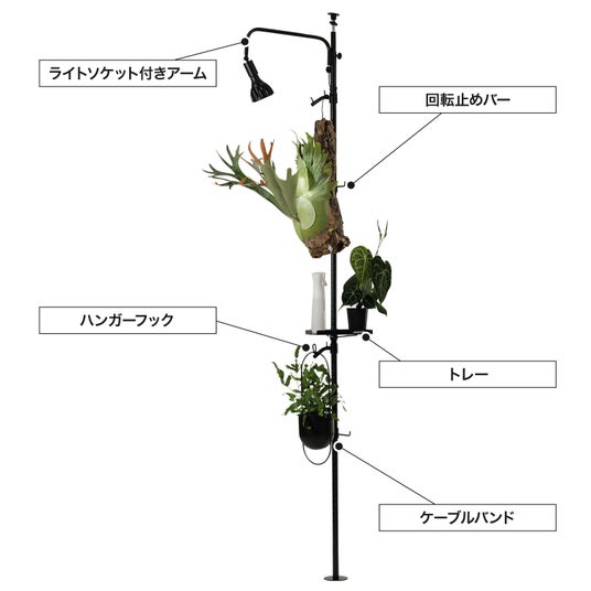 回転止めバー ×2吊り下げた植物が、ポールの後ろ側へ回ってしまうことを防ぐバーが2つ付属。思い通りの向きに植物をセットでき、レイアウトも自由自在。