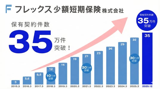フレックスグループ株式会社(本社:東京都新宿区、代表取締役CEO:渡邊圭介)のグループ会社で少額短期保険事業会社である フレックス少額短期保険株式会社(本社:東京都新宿区、代表取締役:栗沢研丞) は、賃貸入居者向け火災・家財保険の 保有契約件数が35万件を達成したことをお知らせします。