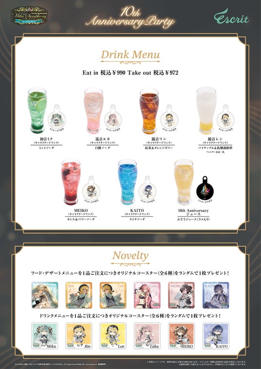 挙式・披露宴の企画・運営を主たる事業として展開する株式会社エスクリ(本社:東京都中央区、代表取締役社長CEO:渋谷守浩、東証スタンダード/証券コード 2196 以下、エスクリ)が運営する神戸の結婚式場「ア・ラ・モードパレ&ザ・リゾート」にて、初音ミクシンフォニー10周年を記念したコラボカフェ「10th Anniversary Party」を2025年12月26日(金)~2026年2月1日(日)の期間限定でオープンいたします。